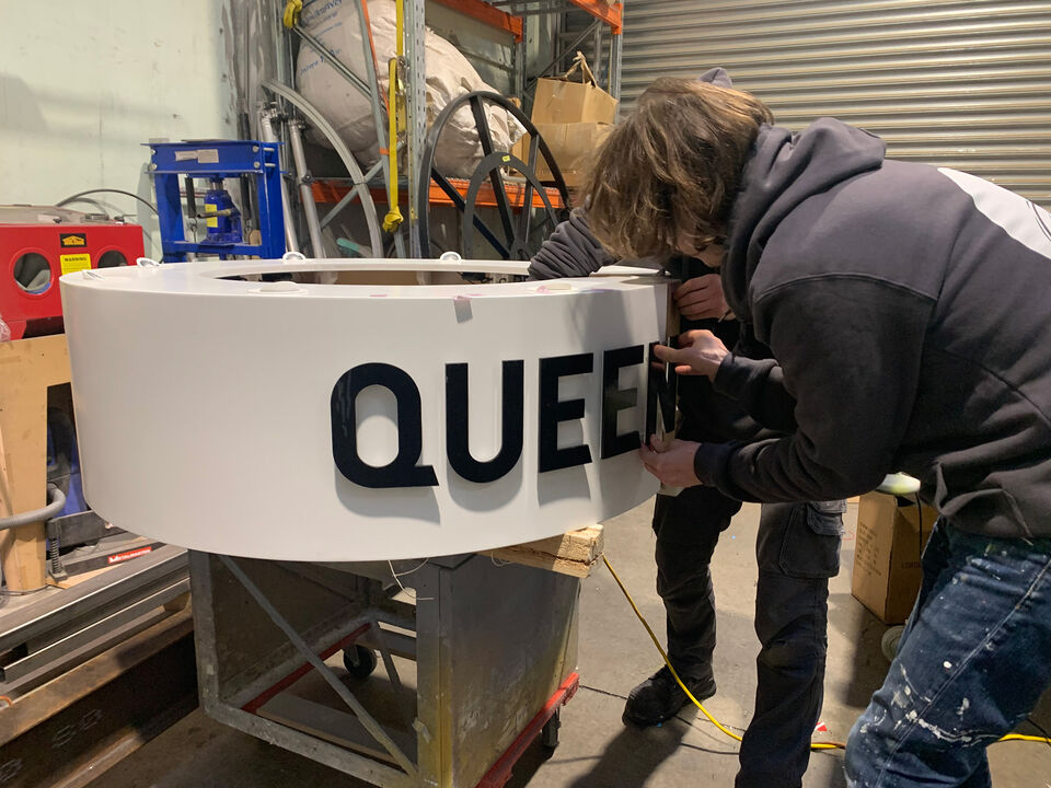 Wrapping table Queensgate Shopping Centre fabricated by Human Dynamo. Production Company: West Mark Productions. Producer: Mark Westerby