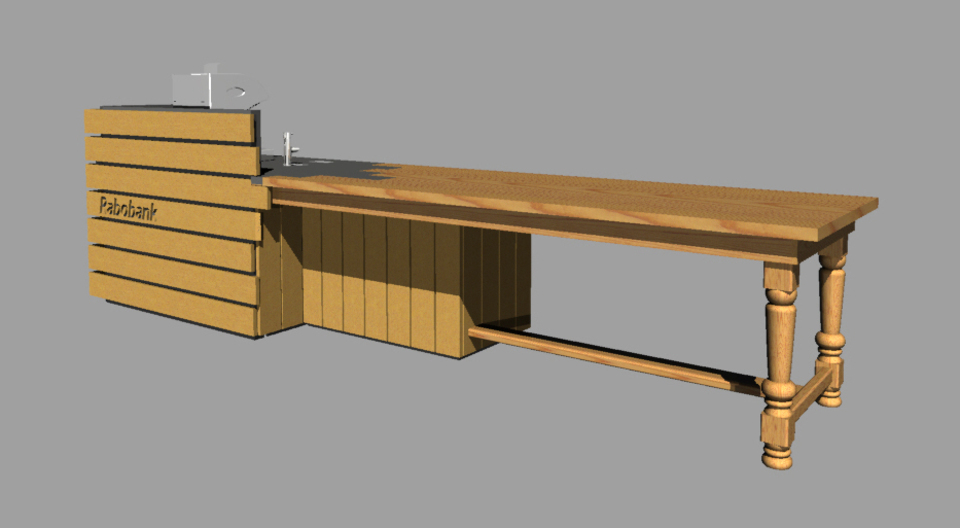 Human Dynamo crafted furniture from American white Oak and American hard maple for Rabo Banks lobby space. The design speaks to the farm table and to lumber yards.